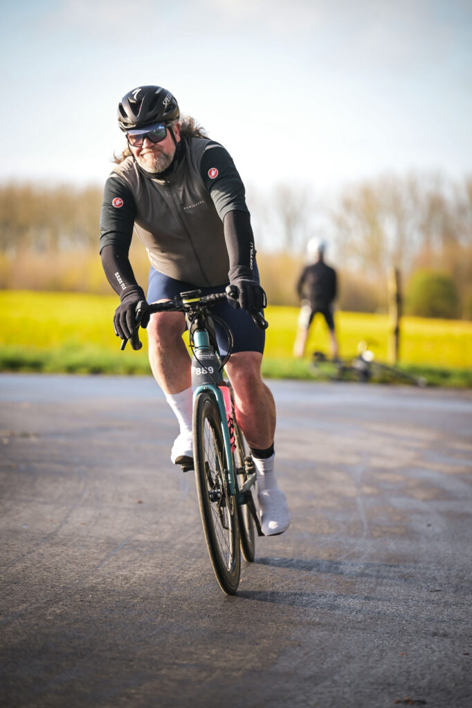 Snel iets gepakt en om me heen gekeken en bij vertrek weer geprobeerd een groepje te pakken voor hoelang het duurde. Het eerste stuk was namelijk flink wind tegen, ondanks dat we dat gewend zijn in Noord-Holland was dit pittig. Bij de volgende verzoringspost in Middelkerke de bidons bijgevuld, de dikke handschoenen omgewisseld voor de iets dunnere en doorgefietst.